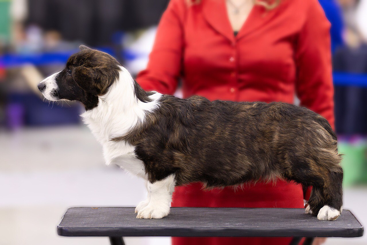 Знакомьтесь, Мегги — наша звездочка! Эта девочка сочетает в себе красоту, грацию и большой потенциал. Она очень перспективна для выставок и уже показывает прекрасные результаты на тренировках. Настоящая находка для ценителей породы!
