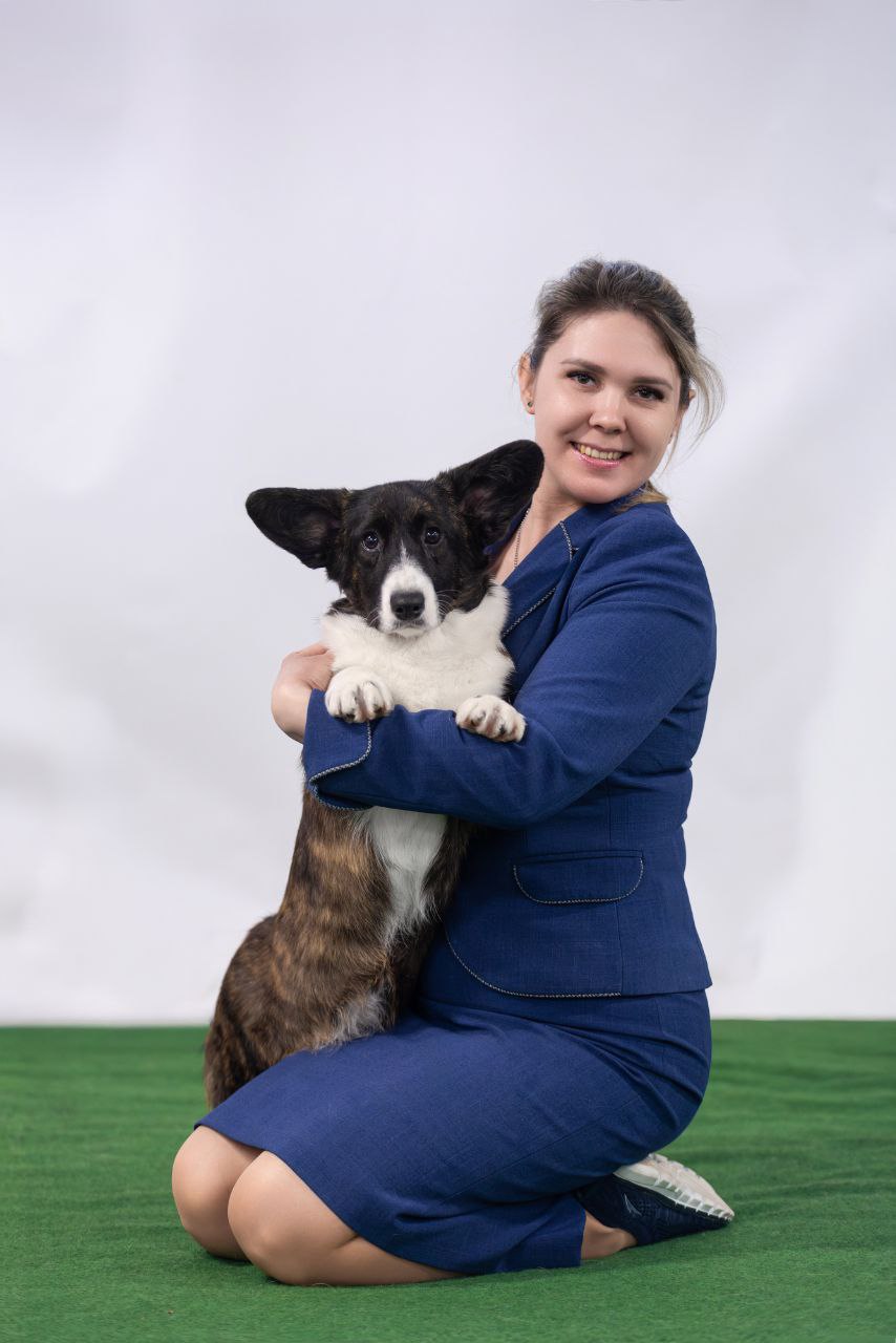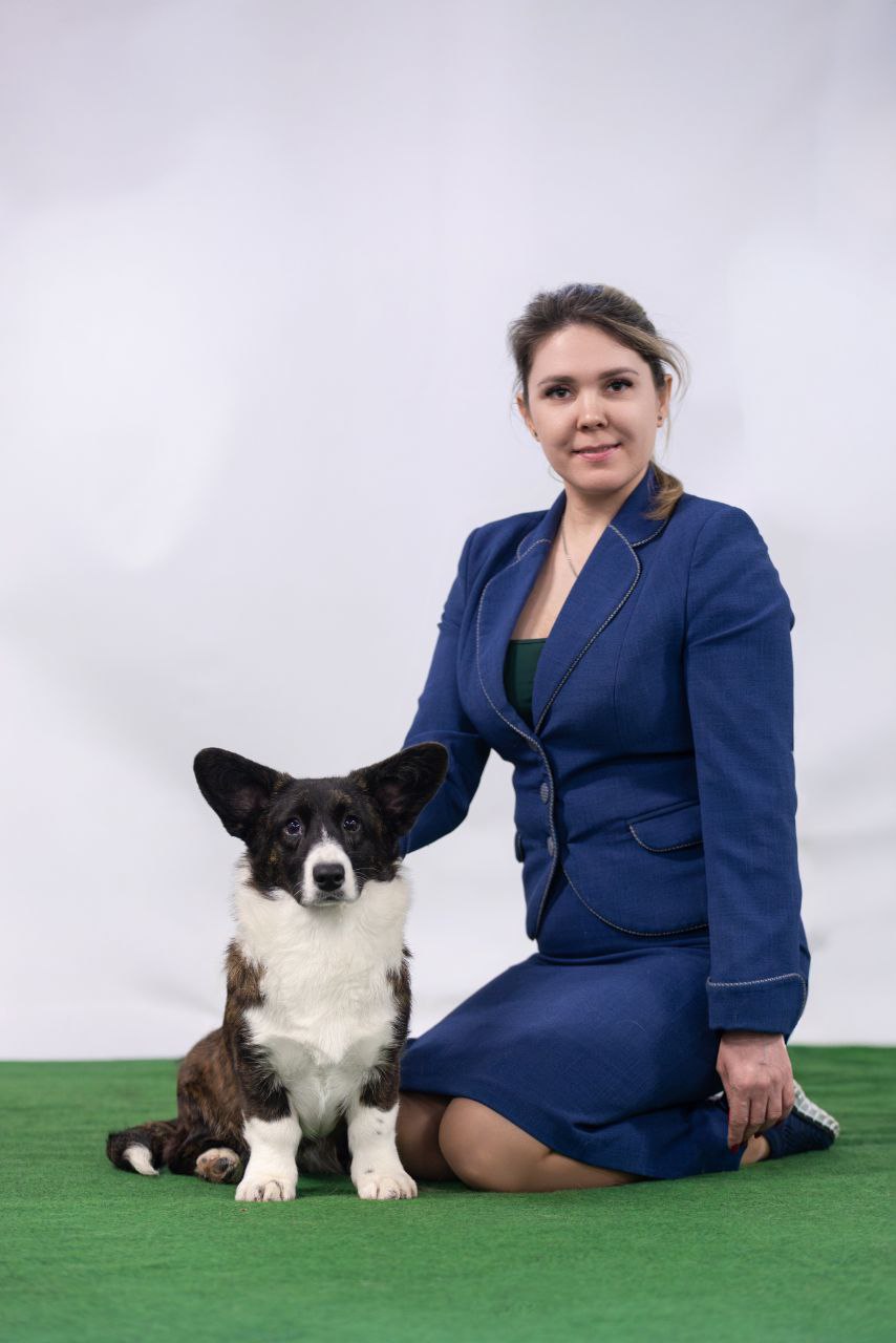 Очень мягкая по характеру, ласковая и безмерно обаятельная девочка. Ходит на корги-йогу, идеально ведёт себя со всеми собаками и людьми. Щенок отлично подойдёт для семьи с детьми: любит играть, легко обучается и старается угодить человеку.