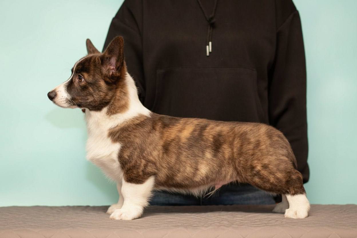 Лайма очень милая и контактная девочка вельш корги кардигана. Яркий триколорный окрас с тигровыми отметинами великолепно смотрится всегда. Классная штучка продается в самые ответственные ручки.